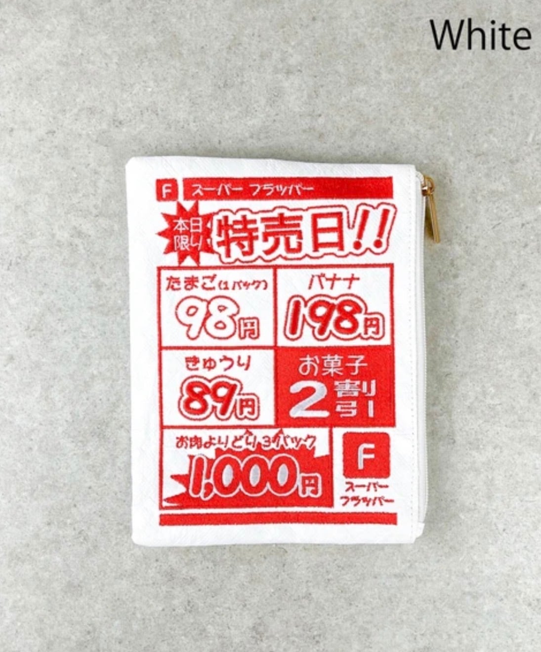 スーパーのチラシをモチーフにしたユニークなポーチが新登場!