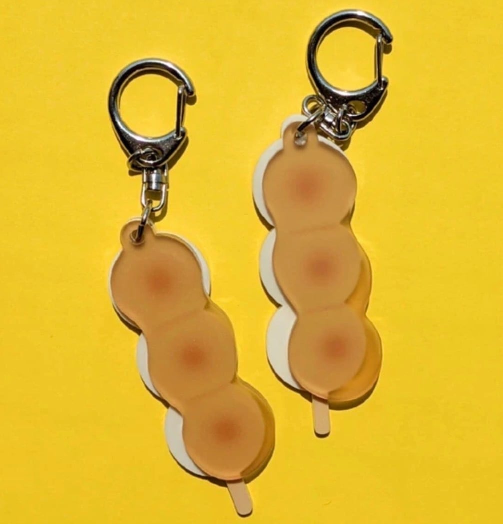 思わず食べたくなるほどリアルな、みたらし団子のアクリルキーホルダー。