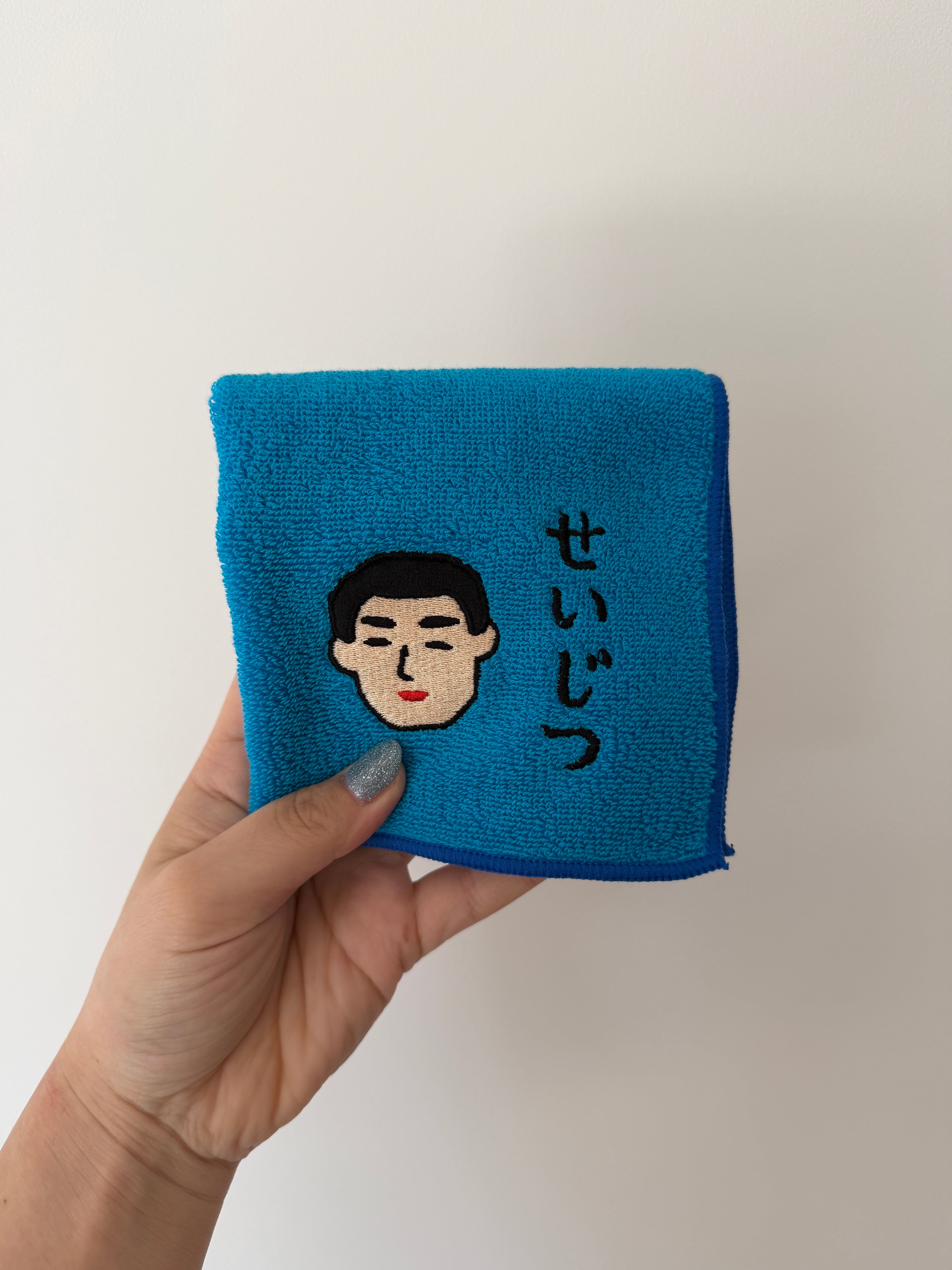 「ニューレトロ」シリーズの、ユニークな柄が刺繍されたハンドタオル。やわらかな綿100%で、高い吸水性を持ちます。